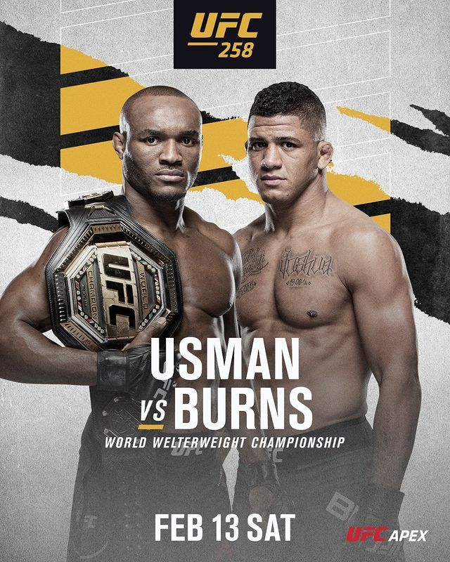 Burns was a mixed martial arts event produced by the ultimate fighting championship that took place on february 13, 2021 at the ufc apex facility in las vegas, nevada. Они подерутся за титул в полусреднем весе. Ufc 258 takes place saturday, february 13, 2021 with 12 fights at ufc apex in las vegas, nevada. Gilbert burns earned his shot at the ufc welterweight title with a dominating performance over former champion tyron woodley in may. Usman, marquez, hernandez, viana receive $50k awards. Ufc 258 is still open for picks to be entered. Кард возглавят американец камару усман и бразилец гилберт бёрнс: Create an account to make your predictions. Ufc 258 took place at ufc apex in las vegas. Главное событие ufc 258 ppv на espn +: Ufc 258 ufc 258 was headlined by kamaru usman and gilbert burns. Чемпион ufc в полусреднем весе камару усман против гилберта бернса.